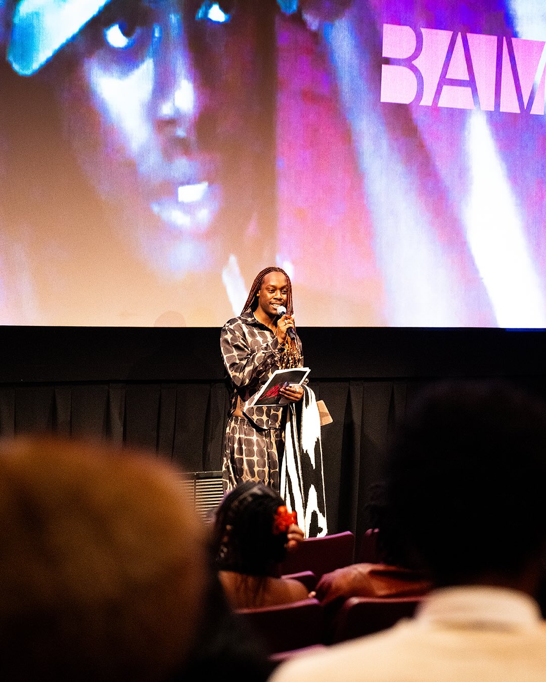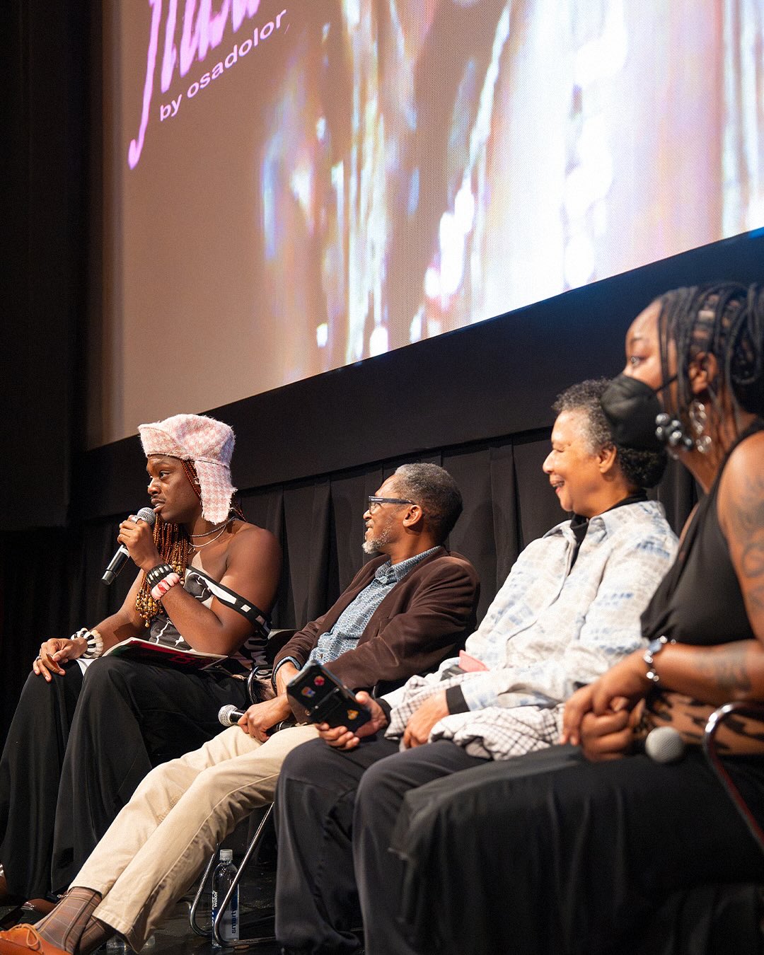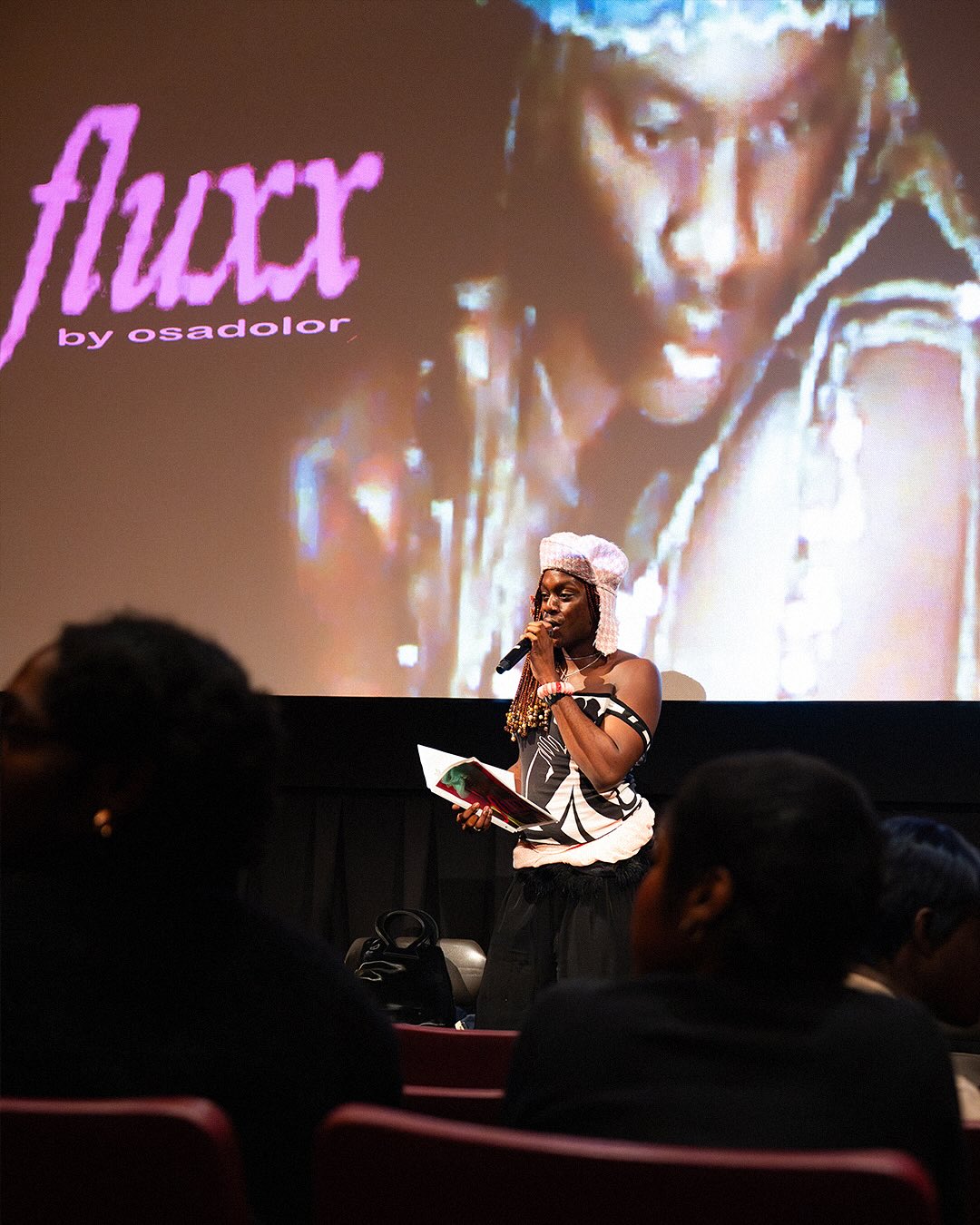 I charmingly glide through these vibrant, bold video interludes with the confident suavity of a video jockey, keeping the packed audience on their toes across this hybrid range of audiovisual flows. By merging forms of popular culture, academia, and art in an energetic display, the program's alluring audiovisual interplay possesses the youthful energy of a deep meditation and a thrilling joyride, with the score infused with a range of dance music, adding an extra spark to the visuals. With outfit changes, wearing Luar runway looks, a dance party during the end credits, and moderating an intergenerational post-screening discussion/Q&A, I created a memorable night for many.