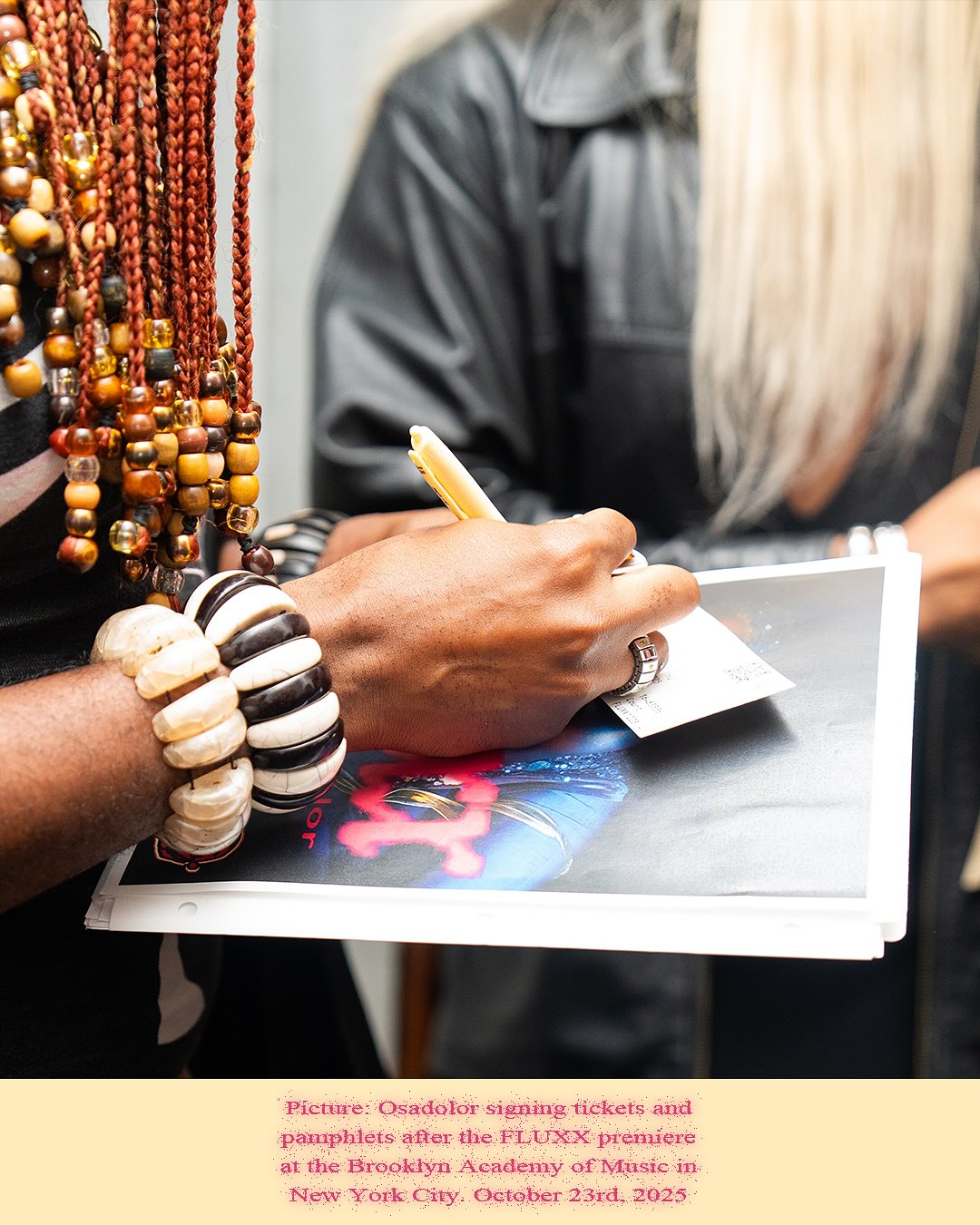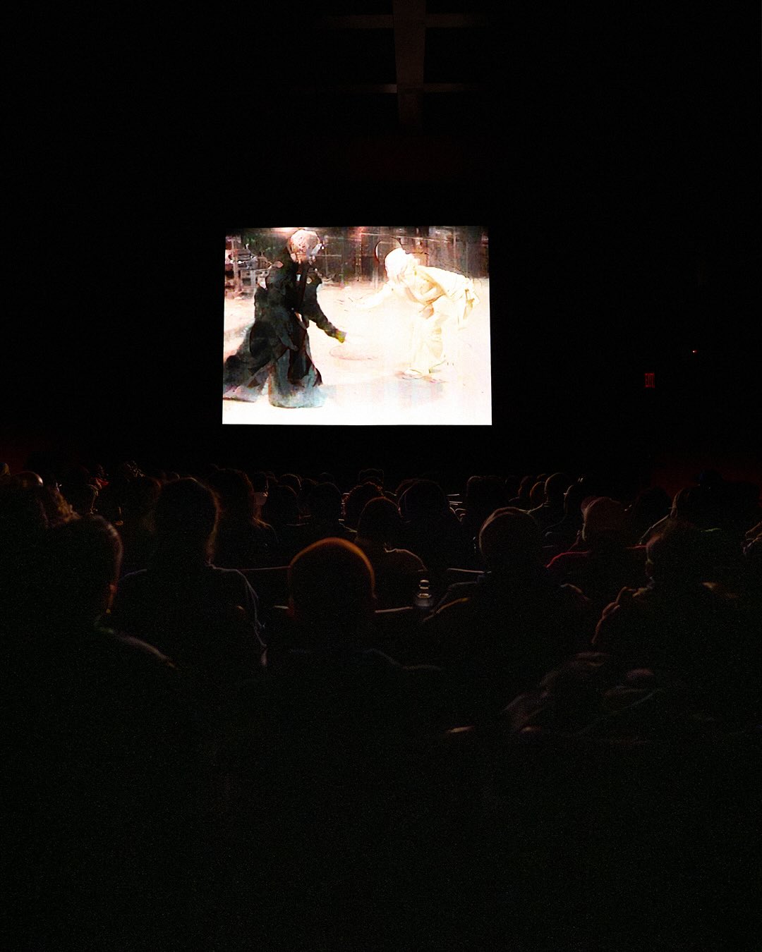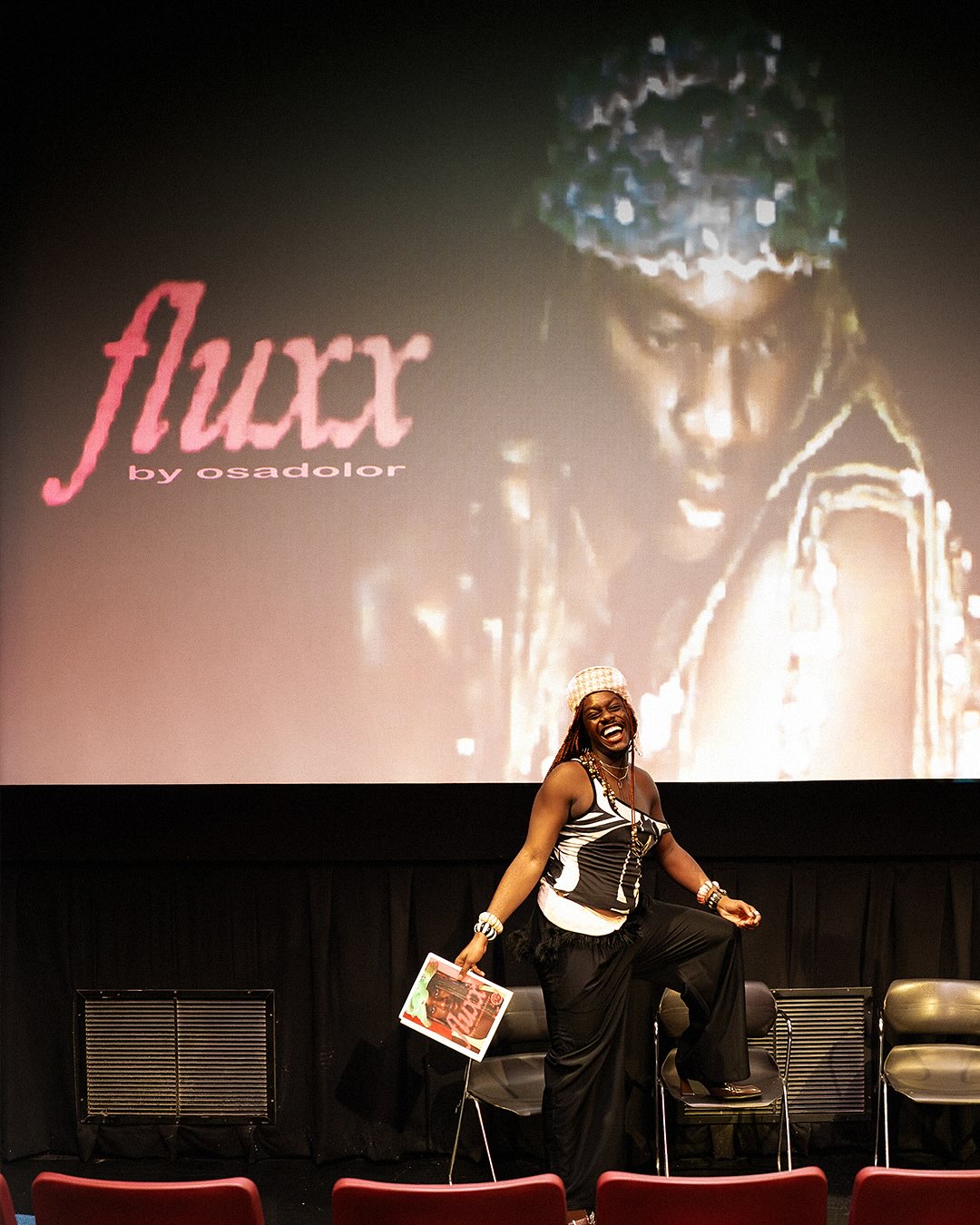 I charmingly glide through these vibrant, bold video interludes with the confident suavity of a video jockey, keeping the packed audience on their toes across this hybrid range of audiovisual flows. By merging forms of popular culture, academia, and art in an energetic display, the program's alluring audiovisual interplay possesses the youthful energy of a deep meditation and a thrilling joyride, with the score infused with a range of dance music, adding an extra spark to the visuals. With outfit changes, wearing Luar runway looks, a dance party during the end credits, and moderating an intergenerational post-screening discussion/Q&A, I created a memorable night for many.