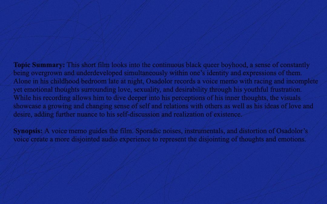 Direction, Sound Design, Editing, Lighting, Production, Post-Production, Illustration